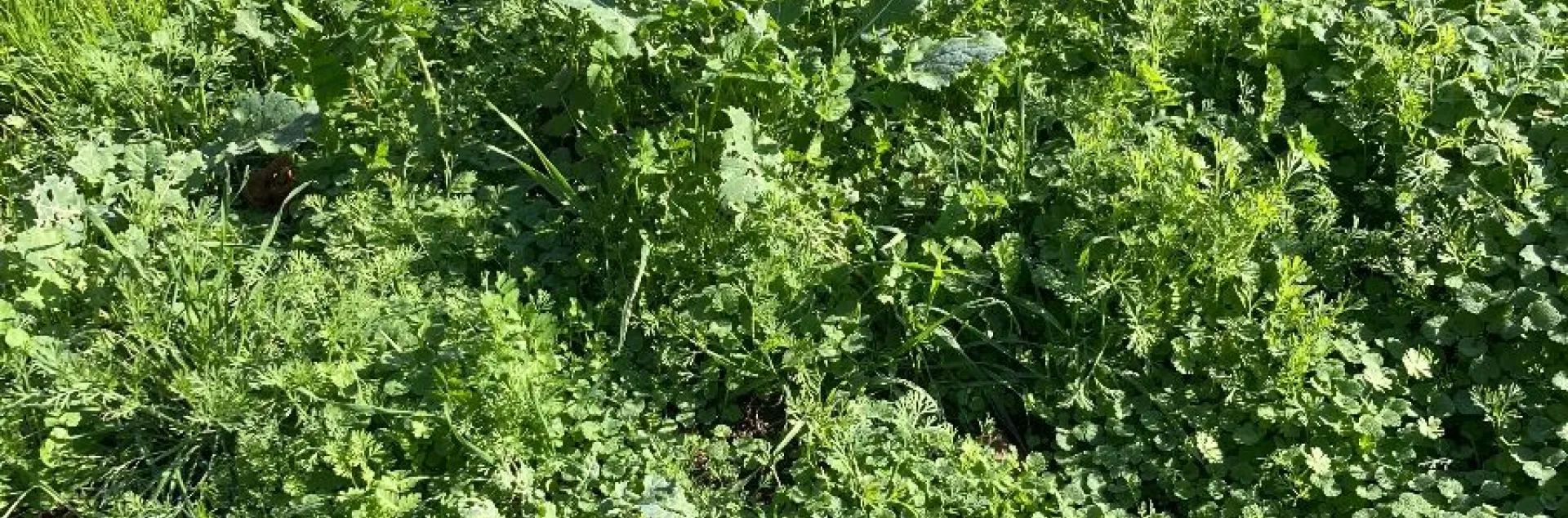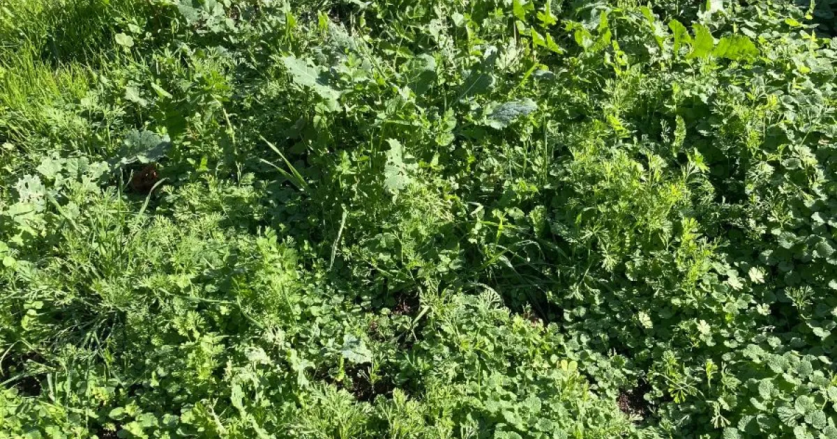 Q: I planted a cover crop in my community garden plot and left it longer than I should have. There are now weeds mixed in with the cover crop blend. I’m not sure what I should do. If there are weeds mixed in with the beneficial plants I’m guessing I shouldn’t turn the plants under to decompose? Appreciate any advice.