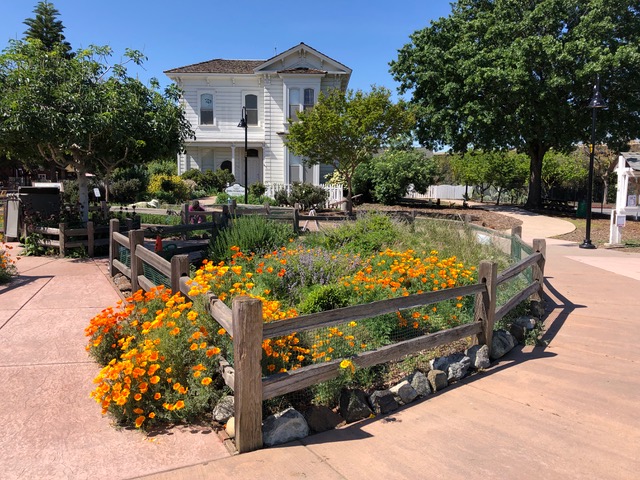 The Native Garden Wheel shows visitors to the park how they can include colorful, low-maintenance and drought-tolerant California native plants to their own gardens at home. Signs placed throughout the 3 planting beds indicate which of these plants attract butterflies, birds, bees, or beneficial insects, and the garden also demonstrates what the plants may look like in various seasons of the year. Since the garden is located directly in front of the Prusch Farm House--a common meeting and gathering place, children on field trips with their parents and teachers, as well as casual visitors to the park have an opportunity to ask questions or learn the names of plants which they might like to try at home. They will also learn that these plants can be counted on to do well in our area without the use of much water or fertilizer, or the need to spray for pests and diseases.