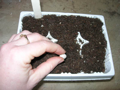 Place the seeds carefully in the holes, cover with more potting mix, and gently firm the soil. Do not pack down.