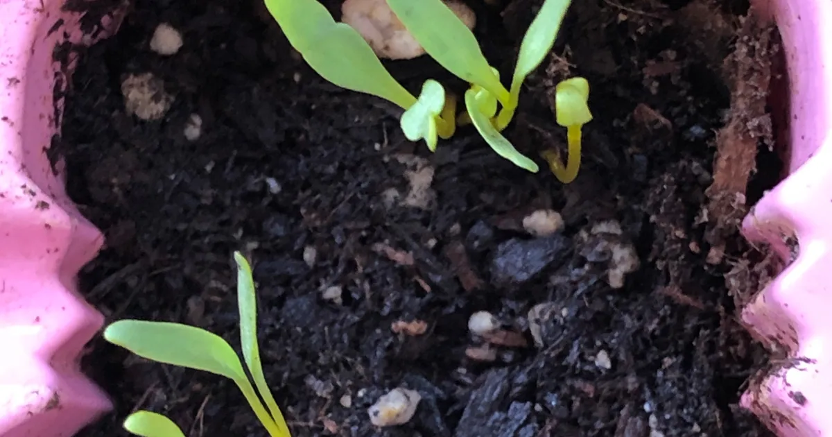 For seedlings growing in six-packs: If you planted more than one seed per cell in a six-pack and all of them germinated, separate the seedlings and replant or thin them when they have one or two pairs of true leaves. To thin, use a scissors to snip off unwanted plants just above the soil line. Don’t pull them out, as this may damage the roots of the other seedling(s) in the pot. To separate them, follow instructions in the next paragraph.