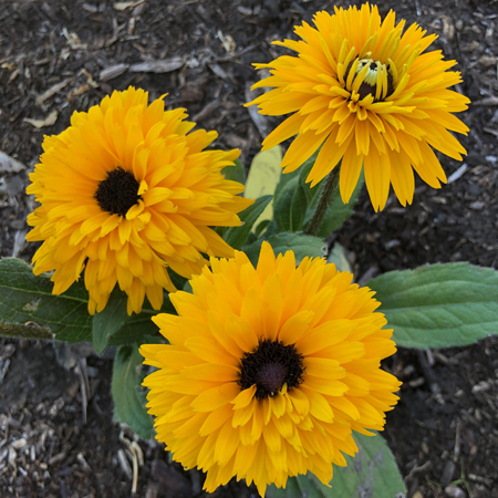 Rudbeckia ‘Gloriosa Double Daisy’ Rudbeckia hirta Quart. Large 4–5" double golden-orange blooms with dark eyes on long, strong stems. Annual, full sun, 3–4' tall |